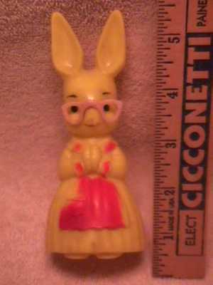 6609. Vintage Hard Plastic Yellow Rabbit With Glasses