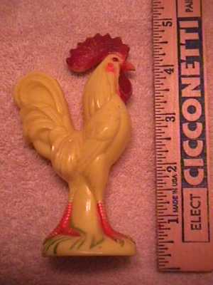 6611. Vintage Hard Plastic Yellow Rooster Chicken