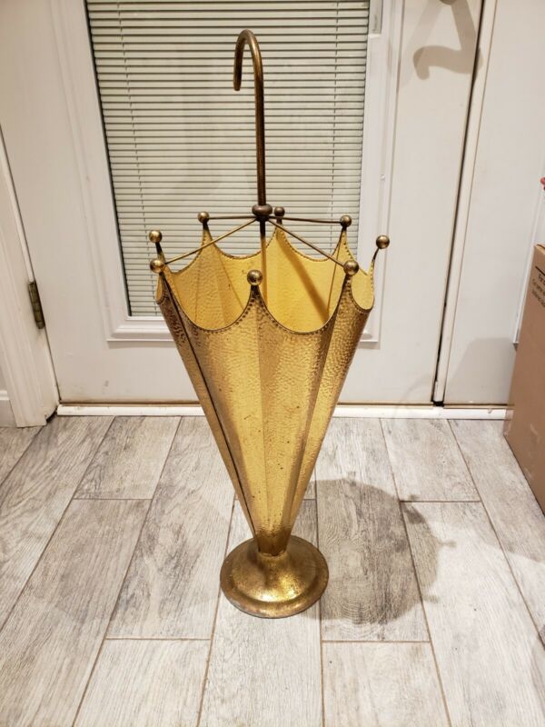 Title (ebay affiliate link): Vintage Brass Umbrella Shaped Umbrella Stand / Round Base 26in tall