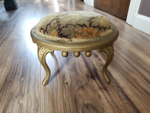 Title (ebay affiliate link): Antique Victorian Round Fabric Footstool Turn of the Century Adorned Metal Legs