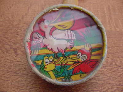 VNTG 1960'S ROUND CARDBOARD & GLASS CHILDS TOY