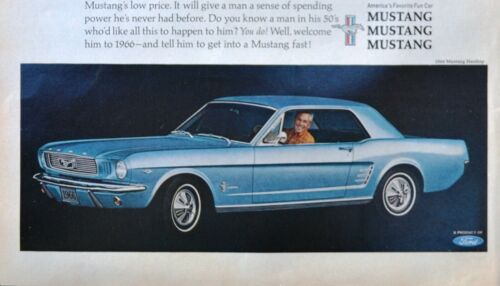 Title (ebay affiliate link): 1966 FORD MUSTANG Blue Classic Car Photo AD Man in his 50''s