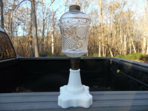 Title (ebay affiliate link): Antique EAPG Horn Of Plenty Oil Kerosene Milk Glass Base Lamp Stand