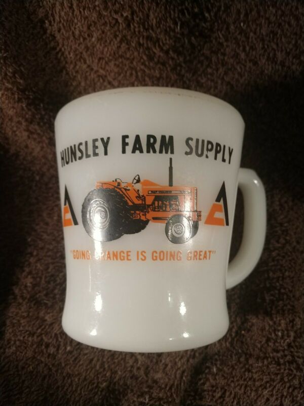 Title (ebay affiliate link): Fire-King Hunsley farm supply Allis Chalmers Advertising Coffee Mug going orange