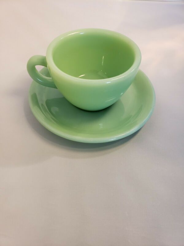 Fire-King jadeite restaurant Cup and Saucer 2pc #573