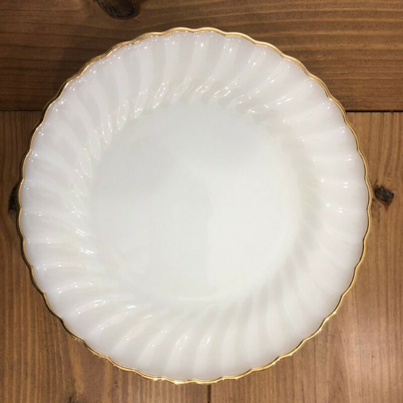 Set 11 Vintage Anchor Hocking Suburbia 10" Dinner Plates Gold Trim Milk Glass