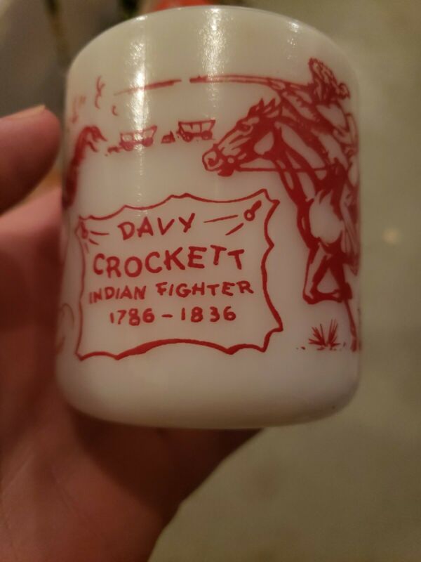 Title (ebay affiliate link): Vintage Davy Crockett Indian Fighter Milk Glass Mug Hazel Atlas cowboy western