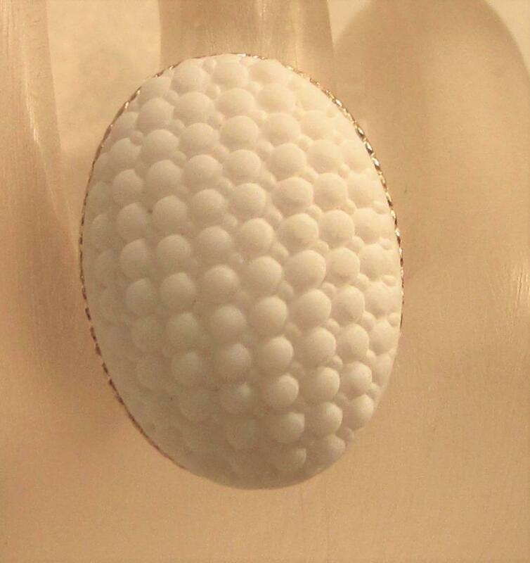 Title (ebay affiliate link): Vintage 50''s Carved Milk Glass Cabochon Bead Cocktail Adjustable Ring White