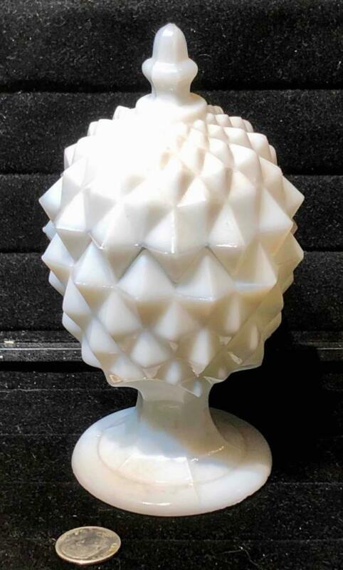 Title (ebay affiliate link): Antique "Sawtooth" White Glass Covered Pomade Jar, Milk Glass, Acorn Finial