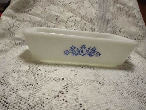 ANCHOR HOCKING LOAF BREAD PAN DISH CORNFLOWER BLUE MILK GLASS OVENWARE VTG.