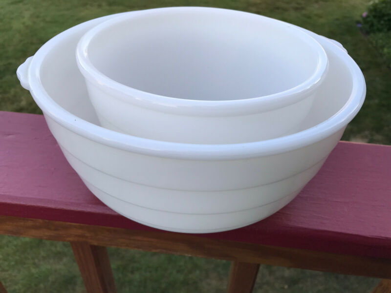 2 LARGE VINTAGE GE MILK GLASS RIBBED RINGS MIXING BOWLS