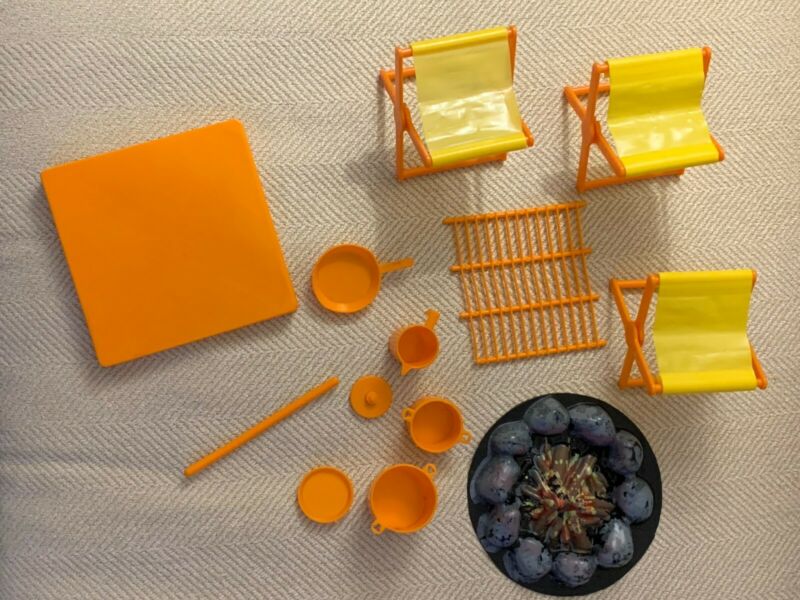 Title (ebay affiliate link): Vintage Barbie Goin Camping Accessories - Campfire, Chairs, Pots & Pans etc