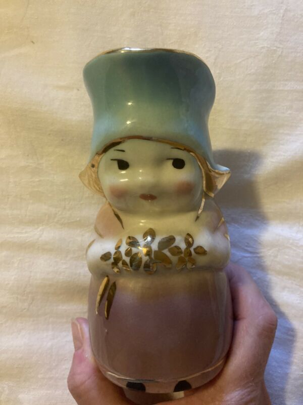 Vintage Lusterware Figural Creamer Girl With Flowers