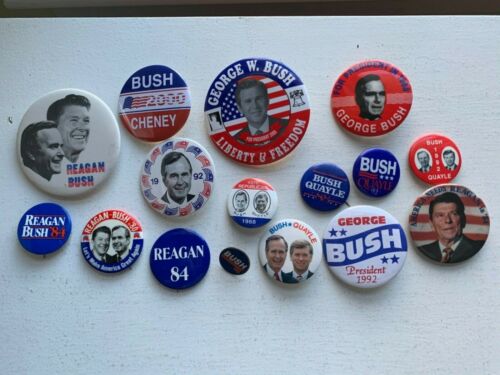 16 diff. PRESIDENT PINBACKS/BUTTONS-REAGAN,BUSH,CHENEY,QUAYLE-84,92,2000