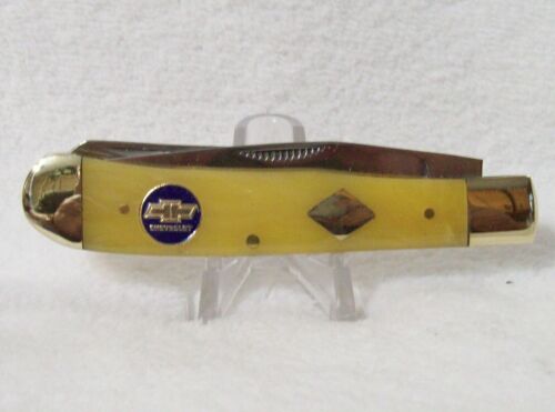 Title (ebay affiliate link): Chevrolet, Double Trouble, Raging Bull, Cream Cracked Ice Trapper Pocket Knife