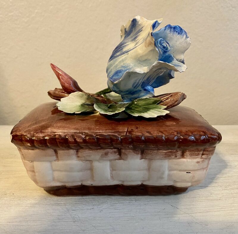 Capodimonte Blue Rose Bud On Basket -ITALY