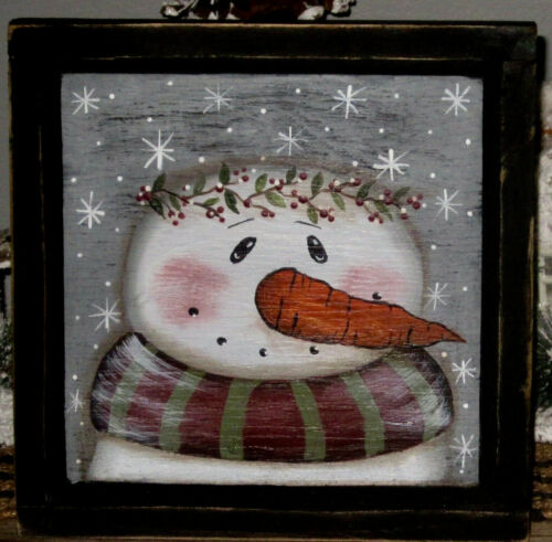*~*PRIMITIVE*~* HP FOLK ART PRIM SNOWMAN *~* WINTER *~* SM. DOOR PANEL