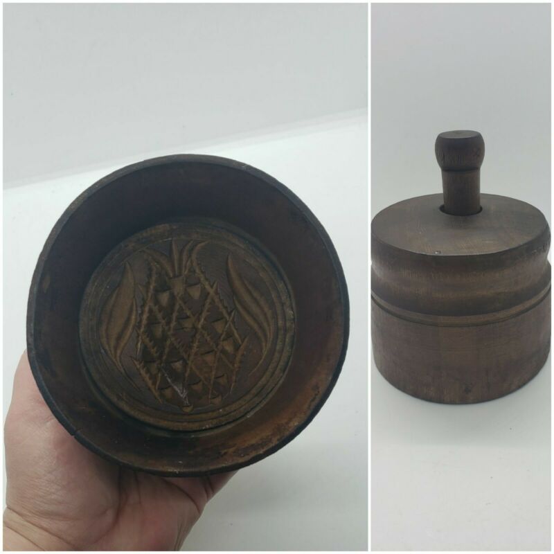 Antique Primitive Vintage Wooden Butter Press Stamp Mold with DESIGN