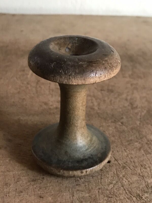 Title (ebay affiliate link): Early Antique Wooden Apple Core Shaker Spool Handmade Textile AAFA Patina