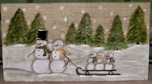 Title (ebay affiliate link): *~*PRIMITIVE*~* HP FOLK ART PRIM SNOWMEN *~* SLED *~* WINTER *~* RECLAIMED WOOD
