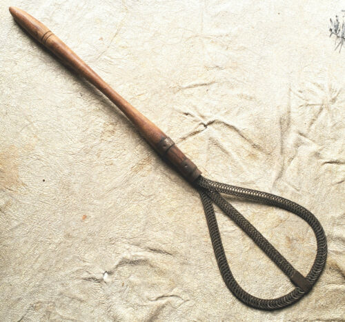 Title (ebay affiliate link): Antique Primitive Rug Beater, Woven Coiled Wire Paddle, Turned Wood Handle