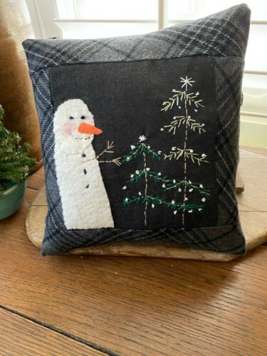 Primitive Stitchery Hand Stitched Christmas Ornie Snowman and 2 Trees