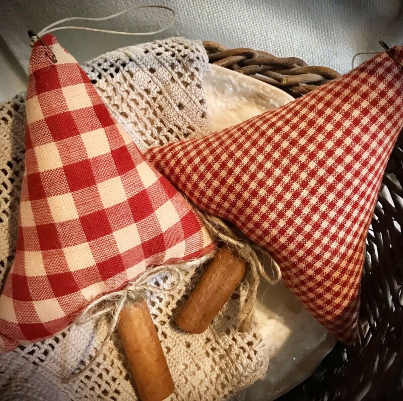 Title (ebay affiliate link): Primitive Country Homespun Red Gingham/Check Christmas Tree Ornie Tuck, Bowl fil