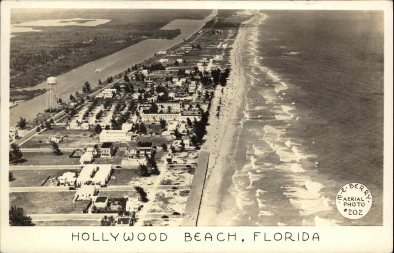 Title (ebay affiliate link): Hollywood Beach FL ME Berry Aerial Real Photo Postcard #202