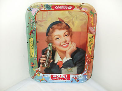 Title (ebay affiliate link): VINTAGE "COCA-COLA" METAL SERVING TRAY MENU GIRL 1953