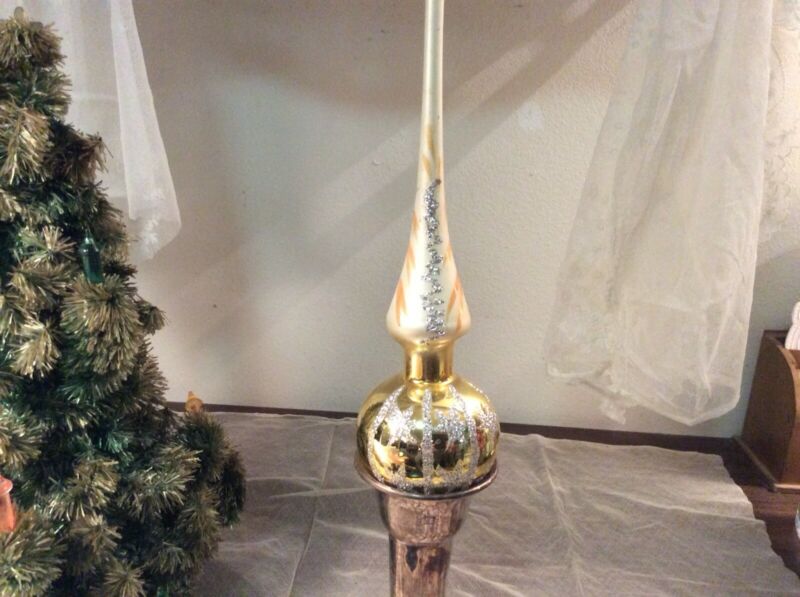 Antique Christmas Tree Topper Vintage Mercury Glass Gold Glitter