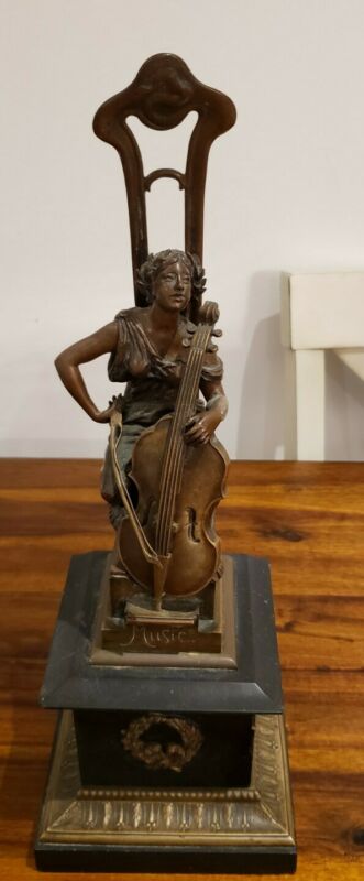 ANTIQUE ART NOVEAU BRONZE WOMAN with CELLO