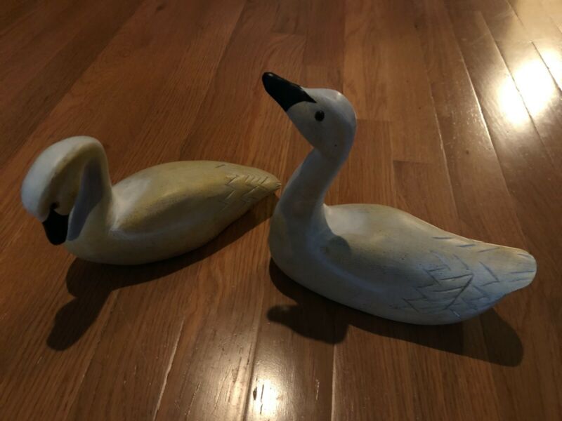 Title (ebay affiliate link): Pair White Wooden Swans 8" Hand Carved Hand Painted w mark by Artist