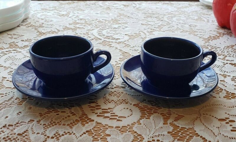 4 Piece Vintage Cobalt Blue Small Tea Cups Teacups and Saucers