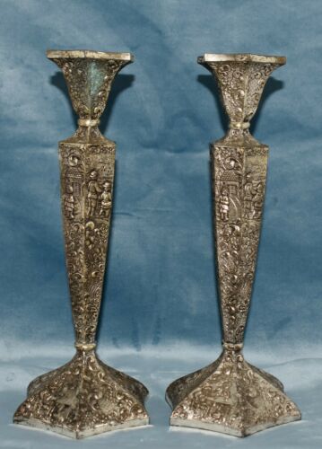 Title (ebay affiliate link): ANTIQUE GOTHIC SILVER REPOUSSE METAL 10" Candlestick Candle Holders PAIR HALLOW