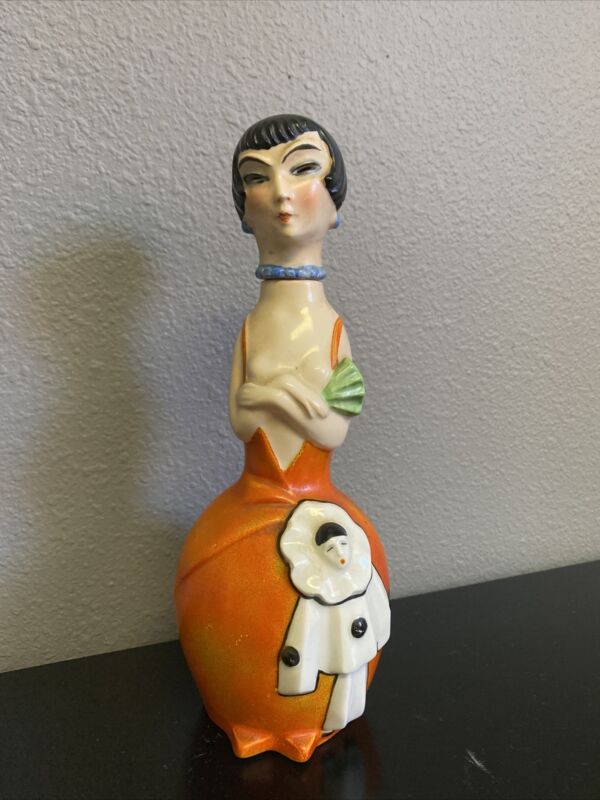 Goebel Vintage Decanter Circa 1930S Art deco Lady Orange Dress Perrot On Skirt