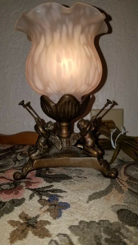 Vtg claw footed Angel Cherubs with horns small spotted glass globe bedside lamp