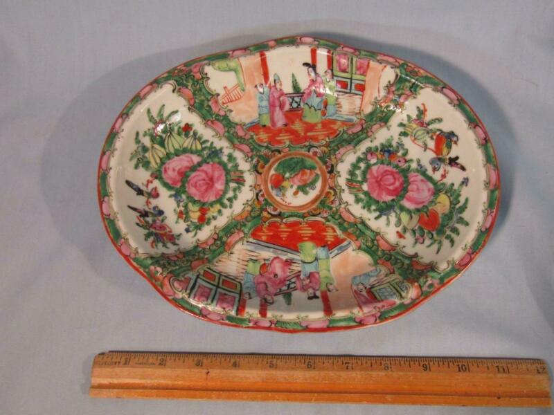 ANTIQUE CHINESE EXPORT ROSE MEDALLION KIDNEY SHAPE 11" BOWL / TRAY