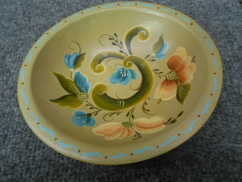 GREEN FLORAL HAND PAINTED MUNISING WOODEN BOWL 6"