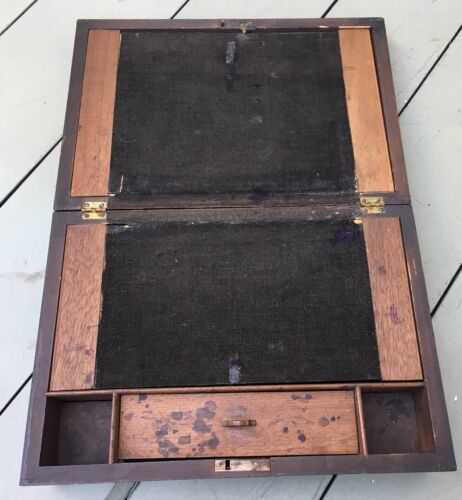 Title (ebay affiliate link): Antique Small Wooden Travel Box Lap Desk Writing Slope 11x8x4" Signed Mark CWV