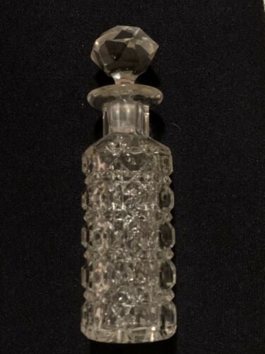 Antique Vintage Pressed Diamond Crystal Glass Perfume Bottle With Stopper Heavy