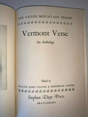 Title (ebay affiliate link): VERMONT VERSE, AN ANTHOLOGY (1932) WALTER JOHN COATES & FREDERICK TUPPER