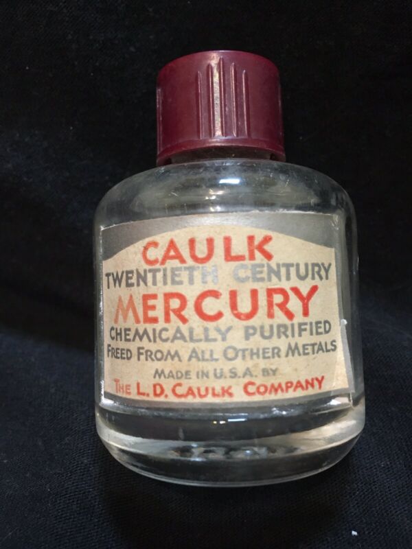 Title (ebay affiliate link): Antique Dental Bottle: Caulk 20th Century Mercury. Empty. Colorful Top and Label