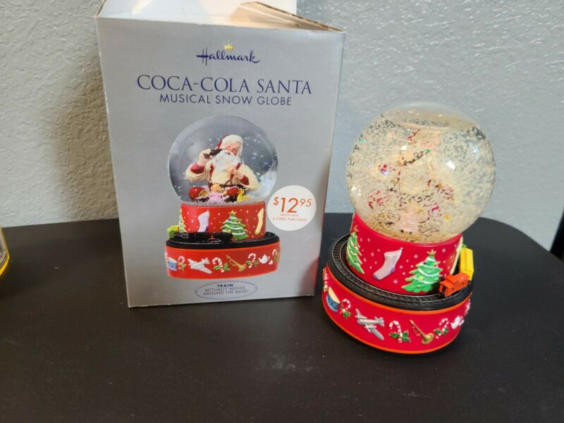 Title (ebay affiliate link): 2001 Hallmark Coca-Cola Santa Musical Snow Globe with Original Box Moving Train