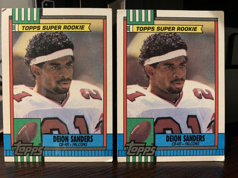Title (ebay affiliate link): Lot of 2 1990 Topps Super Rookie DEION SANDERS Card 469 Falcons Prime Time! HOF