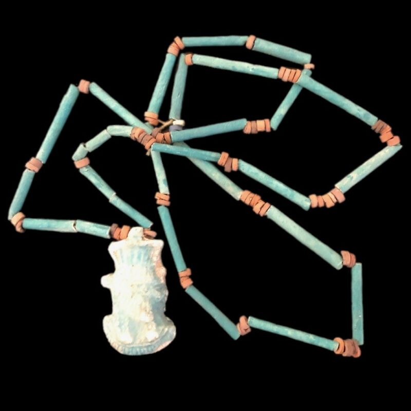 Title (ebay affiliate link): ANCIENT EGYPTIAN RESTRUNG TUBE BEAD NECKLACE WITH AMULET LATE PERIOD 332 BC (3)