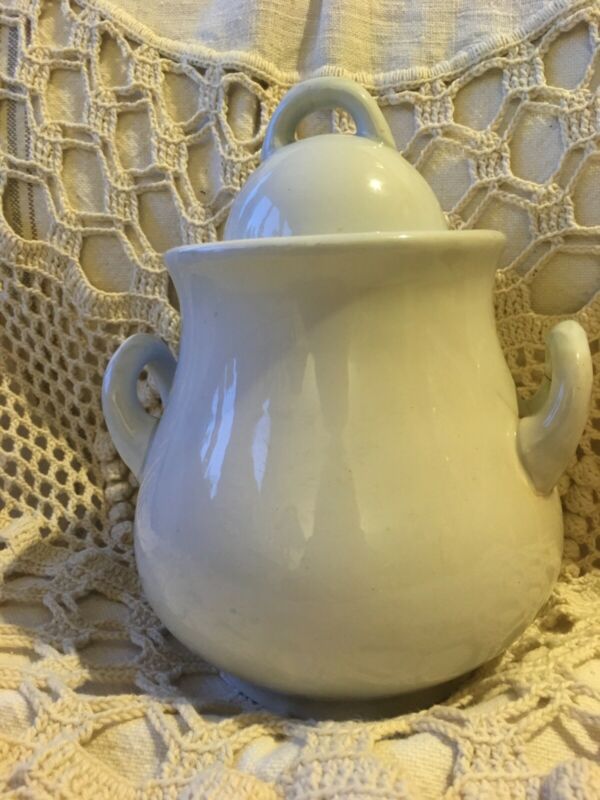 Antique Powell & Bishop Ironstone China White Sugar Bowl/Crock with Lid