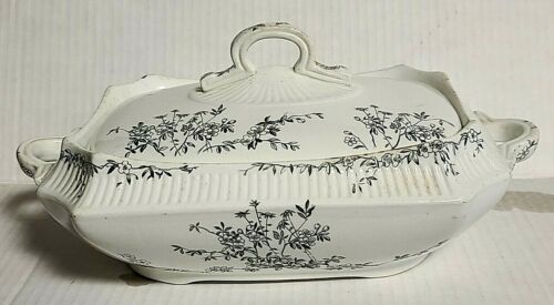 Antique George Jones & Sons Aberdeen Tureen casserole black & white England