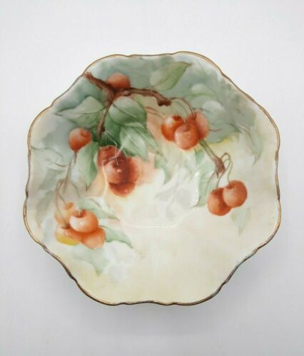 Antique Hand Painted Wavy Edge Serving Bowl Cherry Signed and Dated