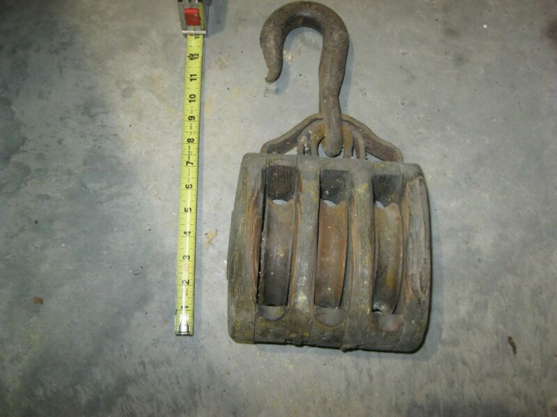 Title (ebay affiliate link): Antique Vintage Wooden Block And Tackle Triple Pulley 65 years old