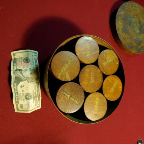 Title (ebay affiliate link): Antique Vintage Wooden Spice Set 7 Containers & Wood Box